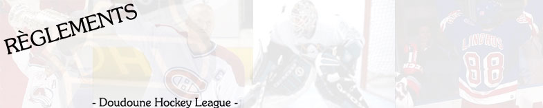 Recrues et Farm Les joueurs recrues sont marqués d'un * après leur nom. Pour qu'un joueur soit considéré comme une recrue, il ne doit jamais avoir joué plus de 25 matchs en une saison. Pour les gardiens, c'est 15 matchs. Le farm est complètement désactivé pour la raison qu'il pourrait avoir une sur-évaluation de certains joueurs. Les joueurs de la section prospects peuvent être intégré au roster seulement s'ils ont joué dans la NHL. Le contrat DHL sera inspiré de ce dernier. Ce sera un contrat de 3 ans automatiquement. Entrée et sortie d'argent Toutes les équipes commencent avec 50 Millions $, et c'est au DG qu'appartient la tâche de gérer cet argent pour pouvoir balancer à la fin de chaque saison. Les divers coûts sont les salaires des joueurs, de l'entraîneur et les autres coûts reliés à la participation à un match. Vous accumulez de l'argent en fonction de l'assistance dans vos matchs à domicile. Vous pouvez vous-même fixer le prix de vos billets, en tout temps. N'allez pas trop haut pour ne pas avoir la surprise de présenter un match dans un aréna vide. Il y a d'autres façons de ramasser de l'argent, soit par les commandites, ou si un de vos joueurs gagne un trophée ou participe au match des étoiles (détails à venir). Il y aura un plafond salariale de 50 000 000$ à partir de la saison 3. À chaque saison par la suite le plafond augmenteras de 1 000 000$. Des changements pourrais être apporté en cas de besoin. Mouvement de personnel Les échanges se font 2 DG à la fois. Chaque DG doit envoyer un courriel à dhlsimulation@hotmail.com et spécifier les détails de l'échange avec les noms au complet. Évidement les deux courriels doivent contenir les même éléments sinon l'échange ne sera pas effectué. Vous avez le droit d'échanger vos joueurs du Pro et du Farm, vos prospects, vos choix au repêchage ainsi que vos droits de recotes et de l'argent. Les PREZ se réservent le droit de refuser toute transaction jugée non équitable. Les échanges seront confirmés après les simulations de la journée pour ne pas se mêler dans les alignements. Un DG peut libérer un joueur en tout temps en rachetant son contrat à 50 % de sa valeur par saison, il doit envoyer un e-mail à la ligue. Un joueur qui est blessé dans la NHL ou qui fait la grève continue d'être actif en DHL. Si la situation s'éternise, les statistiques du joueur risquent d'en souffrir. Lorsqu'un joueur prend sa retraite dans la NHL, il sera enlevé de l'équipe DHL à la fin de la présente saison. Ballotage Un joueur de 23 ans et moins peux etre ceder aux ligues mineures sans problemes. Les joueurs de 24 ans et plus ayant jouer 20 parties ou plus ne peuvent etre céder aux ligues mineures sans passer par le ballotage. Les joueurs ayant jouer moins de 20 parties peuvent etre céder aux ligues mineurs sans aucun probleme. Les équipes auront un délai de 48 heures pour réclamez le joueur. L'équipe la plus faible au classement a priorité. Si une équipe réclame un joueur, elle s'en vas directement à la fin de la liste. L'ordre du classement es celle du jour ou le joueur es soumis au ballotage. Signatures de contrat RFA Joueur de 30 ans et moins. Vous avez le droit de resigné tout vos joueurs RFA. Vous envoyez vos offres de contrats au email de la ligue et une négociation s'entameras. Les joueurs non signés deviendront UFA à la fin de la saison et n'importe quel équipe pourras leur faire une offre. Si le DG ne veux pas resigné le joueur, il dois avisé la direction de la DHL. UFA Joueur de 31 ans et plus. Chaque équipe aura le droit de resigné 1 joueur UFA par saison. Vous envoyez vos offres de contrats au email de la ligue et une négociation s'entameras. Les autres joueurs non signés deviendront UFA à la fin de la saison donc n'importe quel équipe peux les signés. Votre droit de resignature pour les UFA es échangeable si vous le désirez. Par exemple vous avez pas de UFA, donc vous pouvez vous en servir comme monnaie d'échange. Ou bien vous avez un UFA et vous voulez l'échanger, vous pouvez ajouté votre droit de resignature pour augmenté la valeur de votre joueur. Un tableau sera sur le site pour suivre le cours des choses. Lors de la ronde de signature des UFA à la fin de la saison, un joueur ne pourras recevoir une offre supérieur à 12 M$ par saison. Vous ne pourrez offrir plus de ce que vous avez comme marge entre votre masse salariale et le plafond de 50 M$. Exemple une équipe a une masse de 45 M$ elle ne pourrais offrir plus de 5 M$ au total a des UFA sur une saison. Une équipe ayant un current funds de 20 M$ et moins sera considéré comme dans un état critique. Elle ne pourras faire aucune offre à des UFA. L'équipe ayant la meilleur offre l'emporteras. Joueurs sans contrat Vous envoyez vos offres de contrats au email de la ligue. Suspensions Les suspensions sont attribuées automatiquement par le simulateur. Changement de position - Un ailier peut changer de côté comme il le veut, autant de fois que nécessaire. - Un centre peut devenir ailier seulement si le DG peut prouver qu'il peut évoluer à cette position, soit par une revue récente ou un site internet crédible (nhl.com, espn etc). Si le DG ne peut pas prouver mais il tient quand même à faire le changement, le joueur perdra 30 pts d'expérience qu'il ne pourra pas regagner en revenant au centre - Un ailier peut devenir centre seulement si le DG peut prouver qu'il peut évoluer à cette position, soit par une revue récente ou un site internet crédible (nhl.com, espn etc). Si le DG ne peut pas prouver mais il tient quand même à faire le changement, le joueur perdra 50 pts d'expérience qu'il ne pourra pas regagner en revenant a l'aile. - Pour le reste, un défenseur et un gardien restent à leur place, a moins d'une preuve sur un site crédible. Repêchage Étant donné qu'il y aura deux saisons DHL avant le repêchage NHL, les choix seront déterminés comme suit 1ère saison : Cho